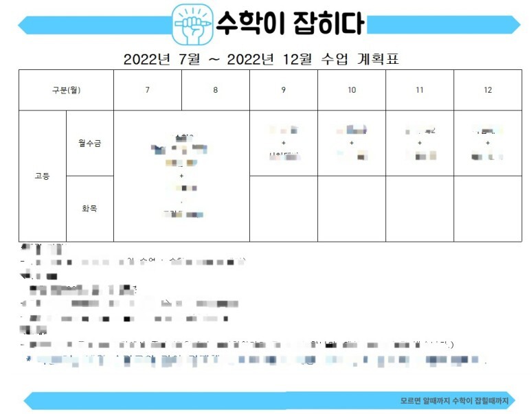 그리고 아이가 적응을 다 했다 싶을 때에 아이의 수업 계획표를 보내드립니다.
