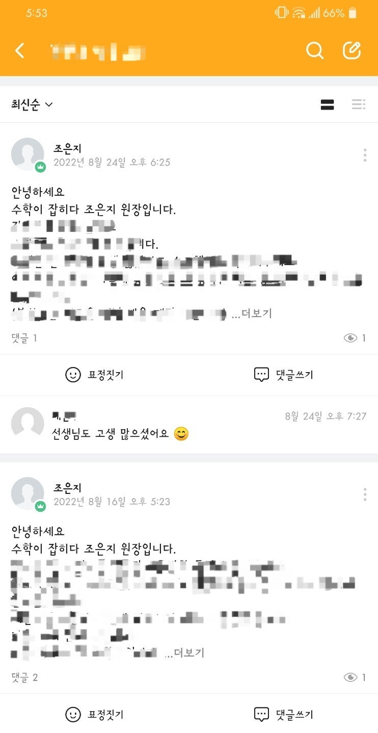 학원 이름은 #수학이잡히다 입니다.