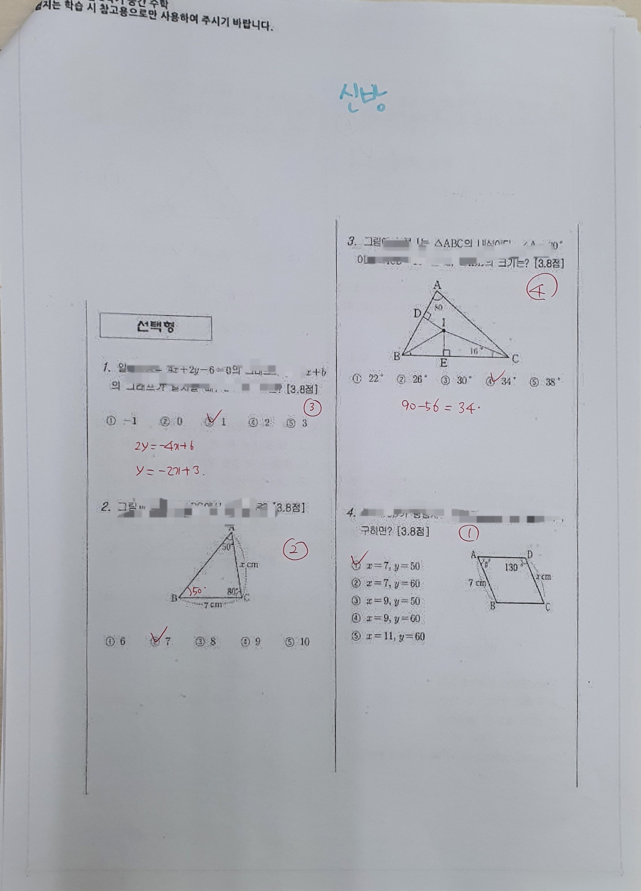 안녕하세요 천안 수학학원 "수학이 잡히다" 입니다. 오늘은 천안 신방중학교 2022학년도 2학기 ...