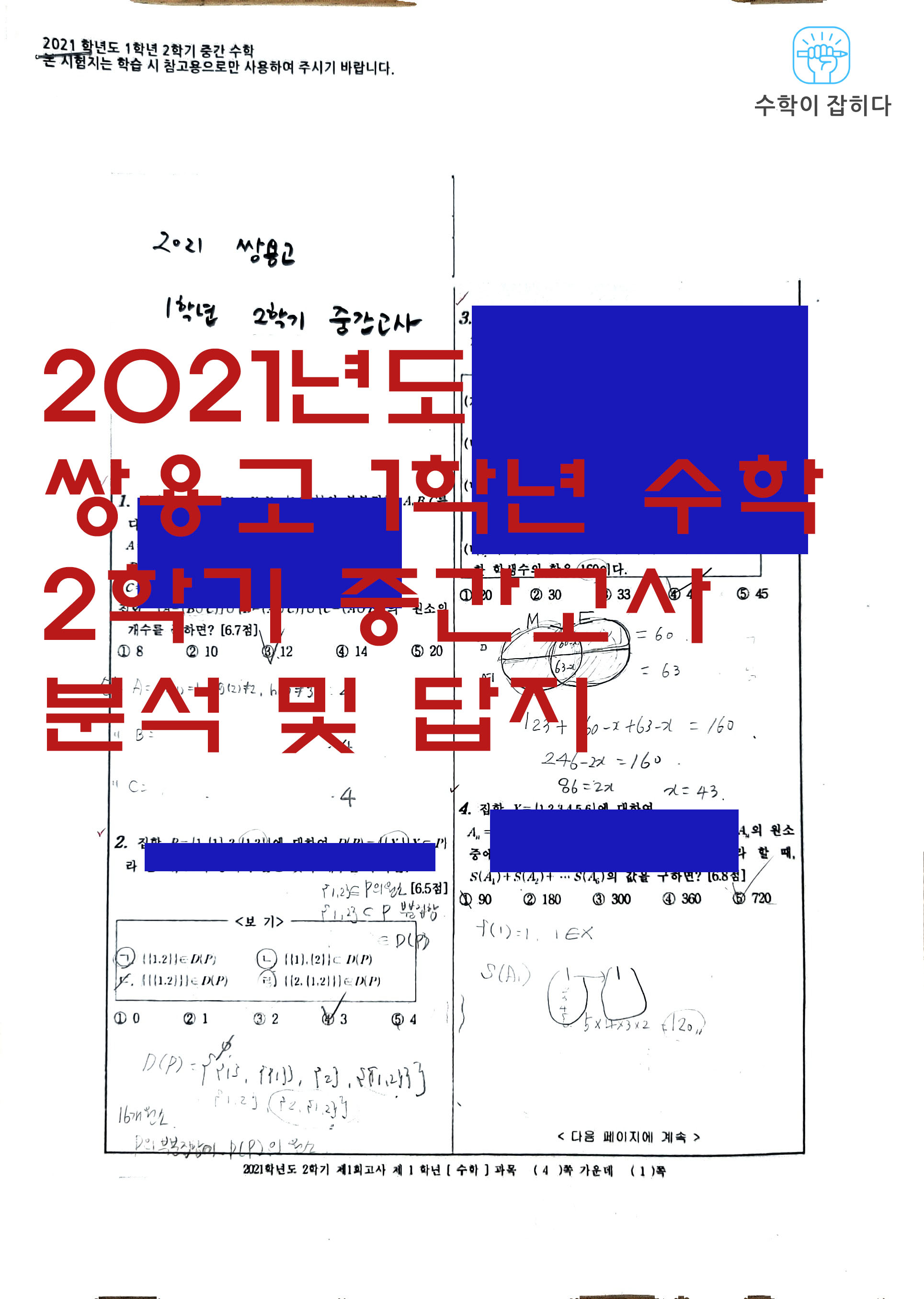 안녕하세요 천안 수학학원 "수학이 잡히다" 입니다. 오늘은 쌍용고등학교 2022학년도 2학기 학사...