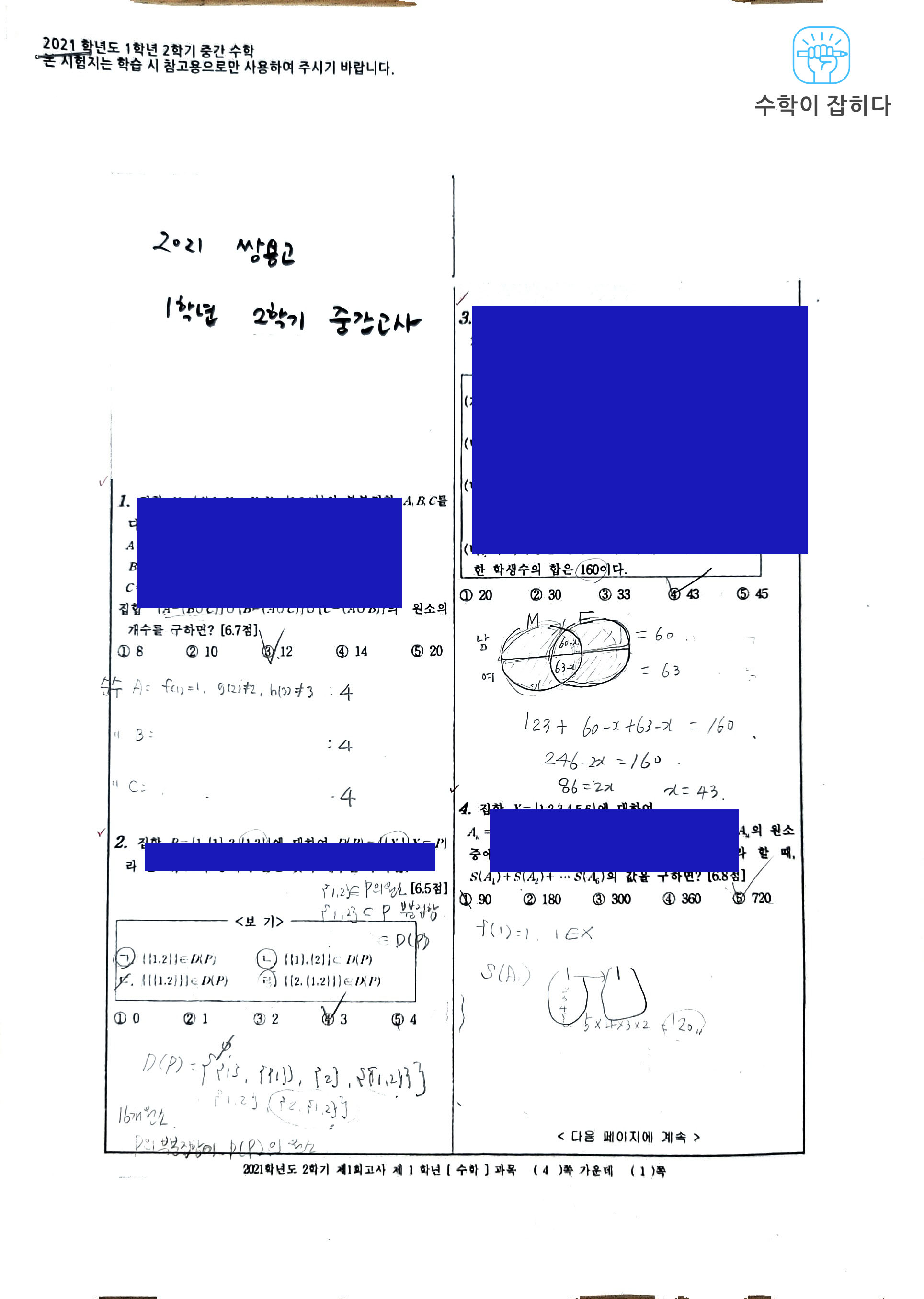 수학 문제지에 대한