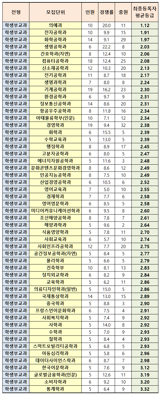 인하대학교 2022학년도 수시등급