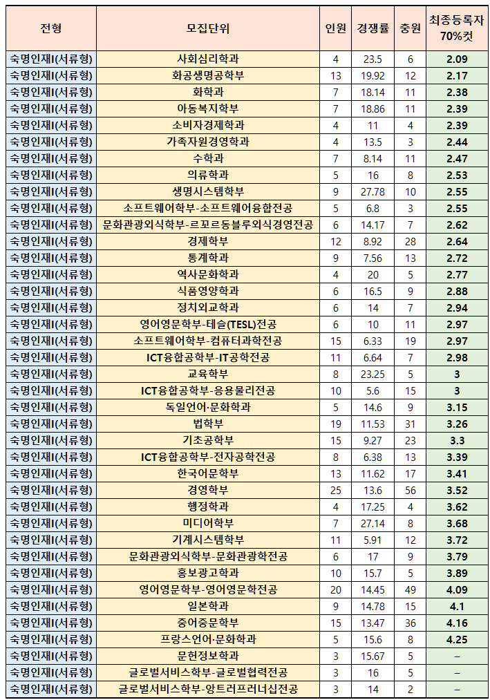 숙명여자대학교 2022학년도 수시등급
