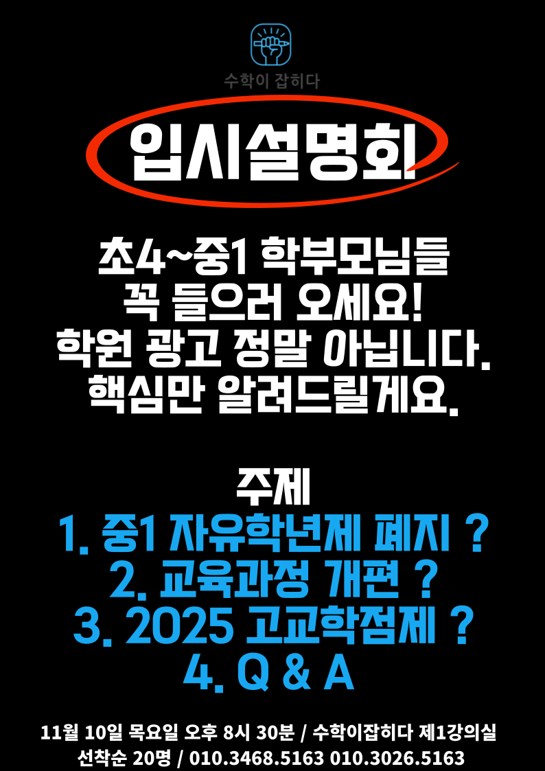 수학이잡히다에서 입시설명회를 준비했습니다.