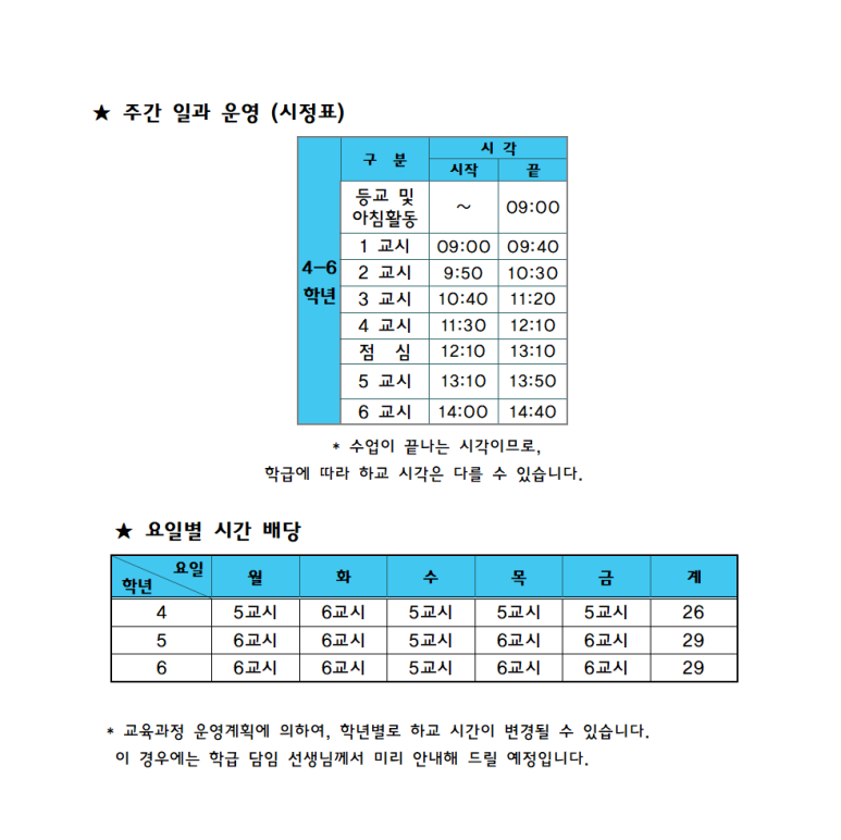4,5,6학년 시간표를