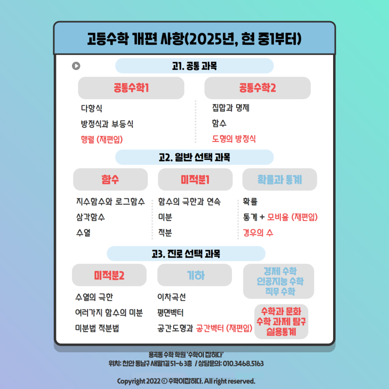 고등수학 단원별 안내 (2025년~)