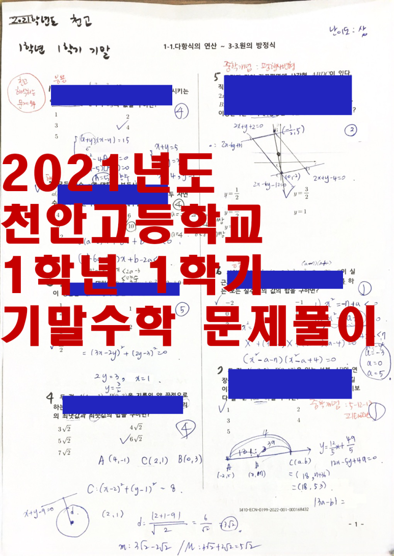 | 북일여자고등학교 2021학년도 1학년 1학기 기말고사 문제풀이 공개. 천안수학학원 <수학이잡히다> (0) | 2022.06.20 |